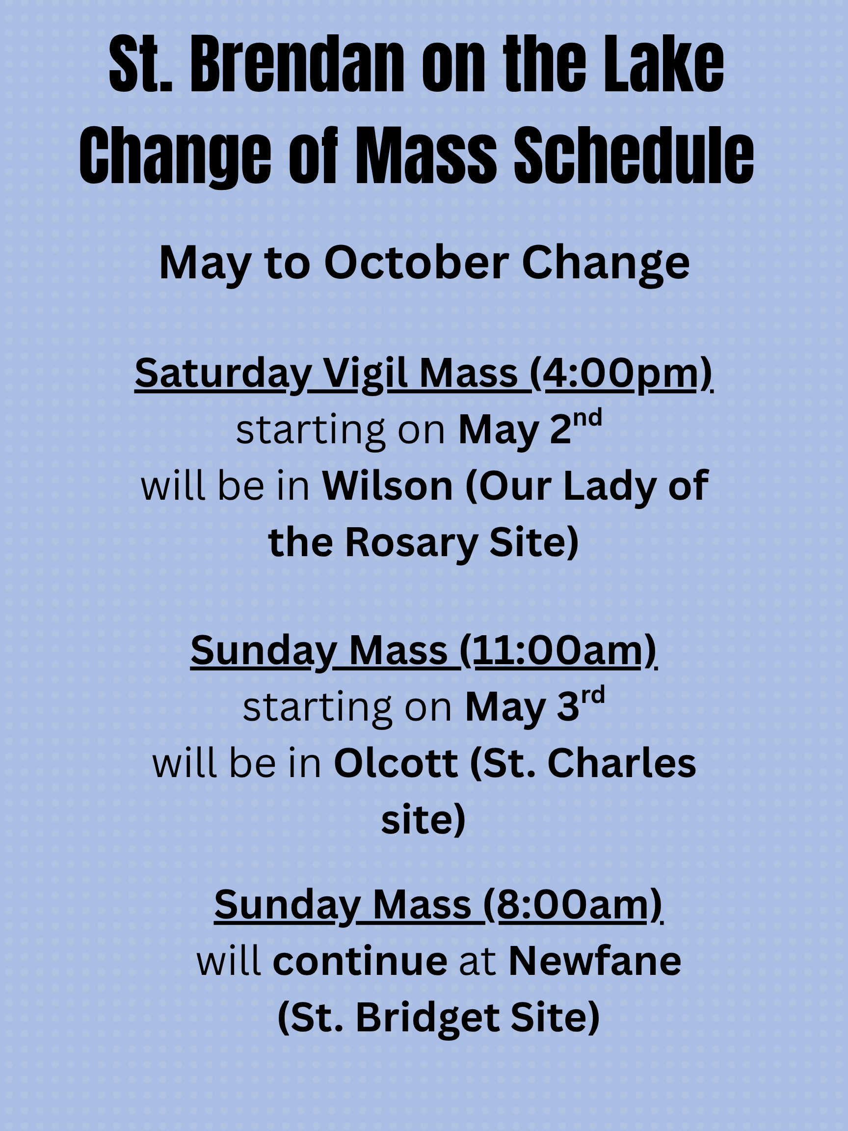 Saturday | 3:30 PM-3:50 PM Newfane (Nov.-Apr.)